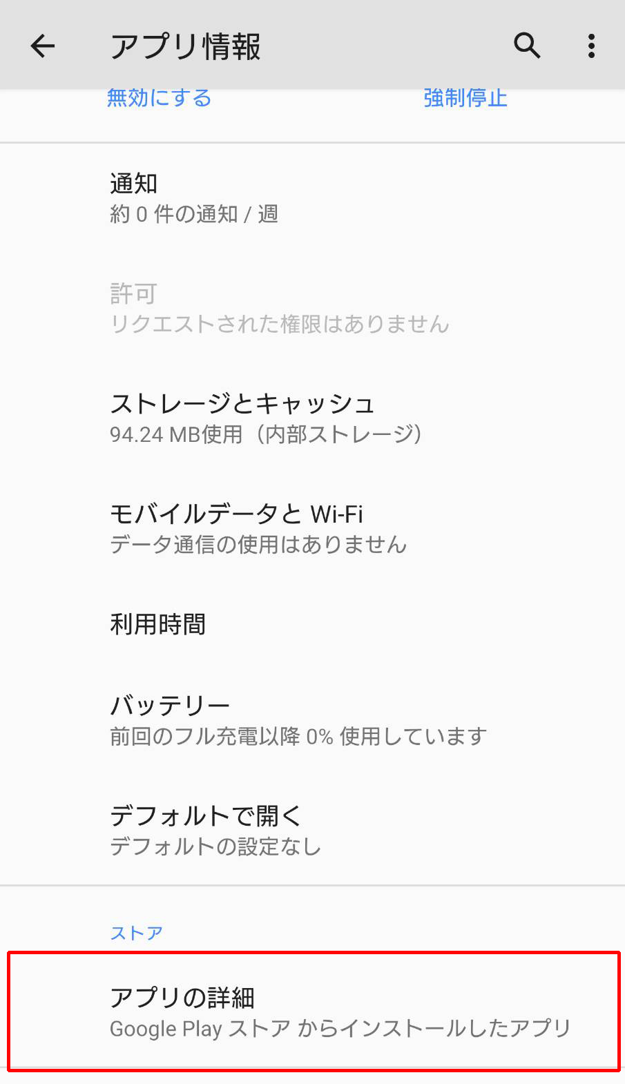 6.アプリの詳細からGooglePreyストアのアンインストール画面へ行く