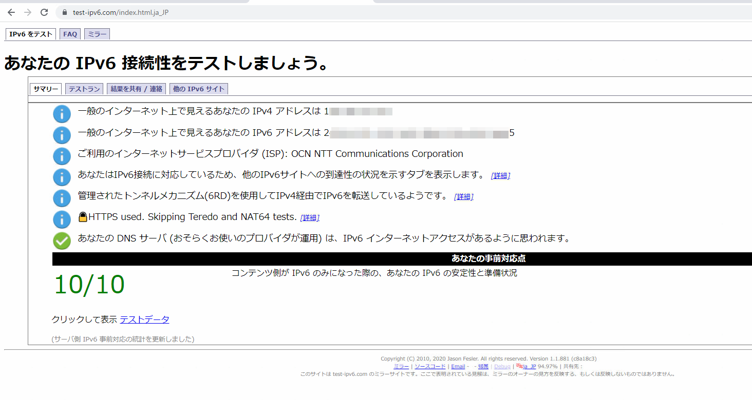 ログインしたての画像です。「接続先設定(IPv4 PPPoE)」となっています。ipv4接続なんだね!と確認。普通にポート解放すればカメラは見れるようになるしP2P通信でライブ監視も可能なハズです。「メインセッション」の部分が選択不可なのでなぜだろう?思いながら色々手探りで探していきます。詳細設定等も見たけど、いまいちわかり図らいですね....。色々見ている内にこの画面ではポート解放がない事に気づきました。取りあえず、私の自宅の様に楽天ひかりさんのDS-Lightの様なv6通信もやっているのかブラウザから確認することに