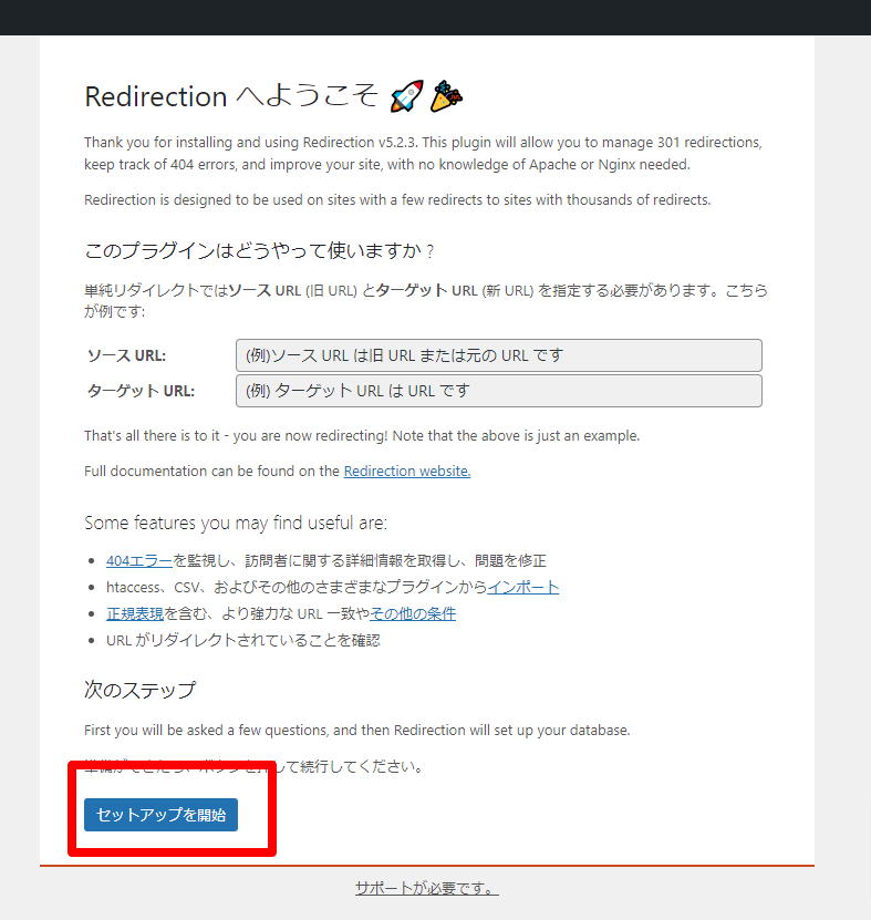 最初にプラグイン開くと、この様な画面が表示されます。赤枠の「セットアップを開始」を選択します。