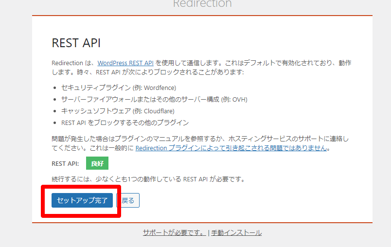 ここは赤枠通り、「セットアップ完了」でOKです。