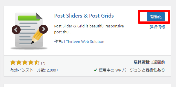 プラグイン名は作者: I Thirteen Web Solutionさんの「Post Sliders & Post Grids 」と言うプラグインです。