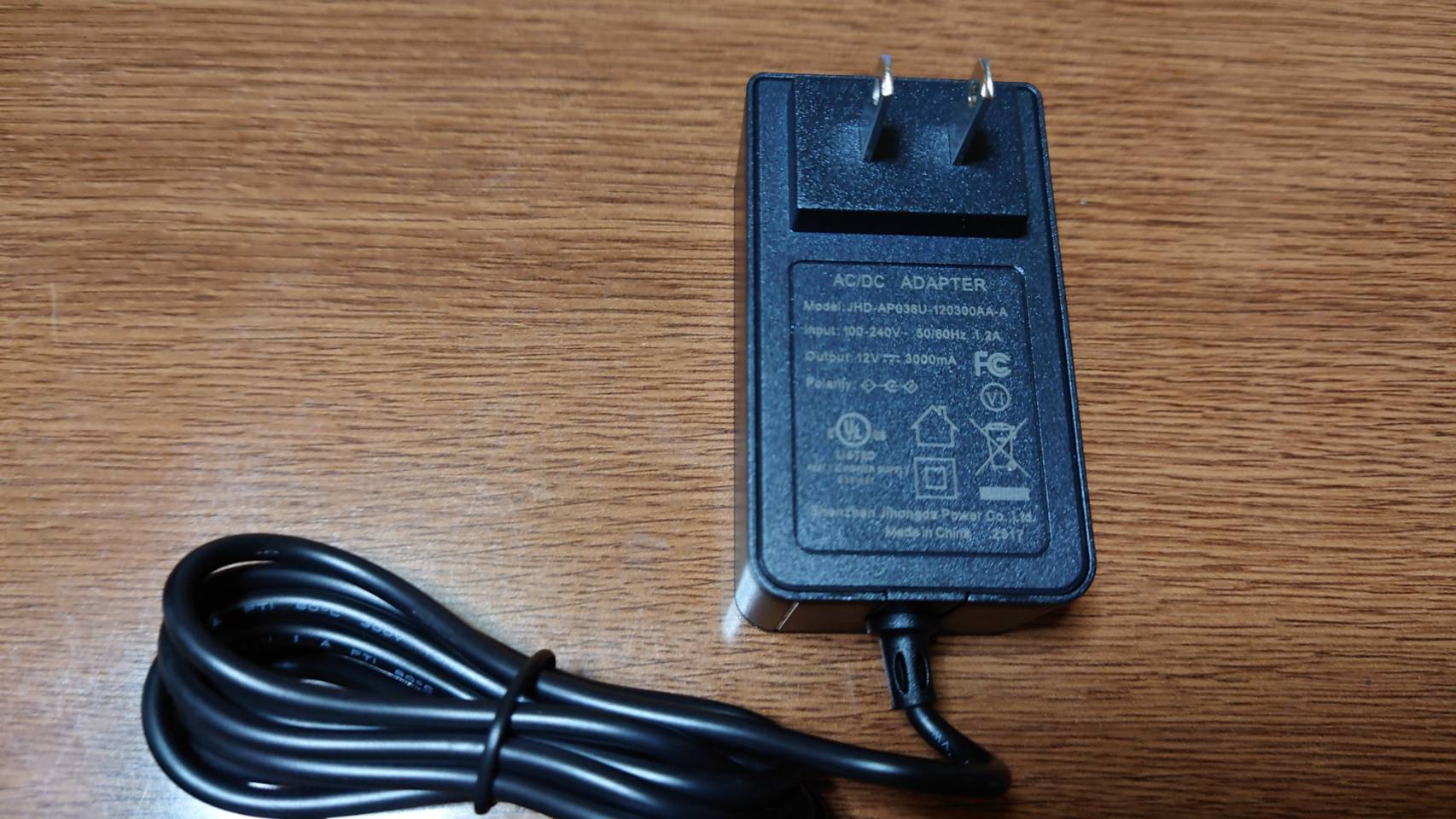 付属のAC電源も撮影しましたが、文字が見にくいです。