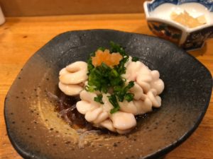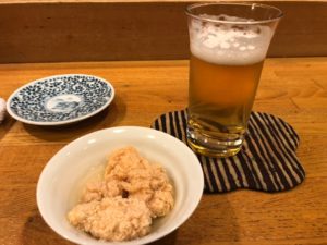2.次にアルコールを選び、お通し。たらこだったと思います。