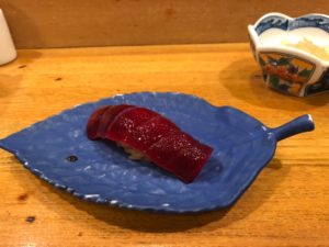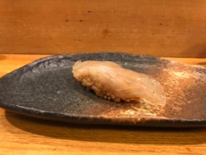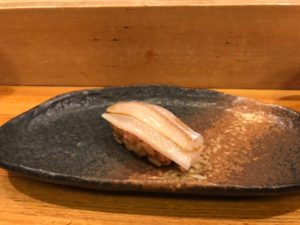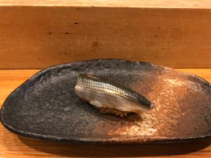3.最初のお寿司はコハダ!店主さんは「やっぱり最初はコハダだと思うんですよね~」と言って出して下さいました。