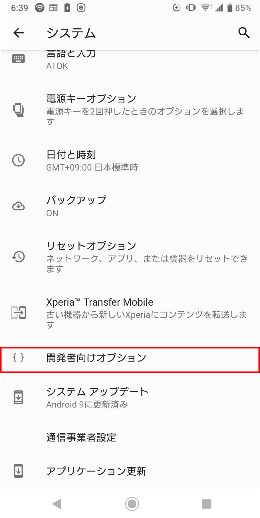 1-2.「詳細設定」を選択後表示される「開発者向けオプション」を選択します。