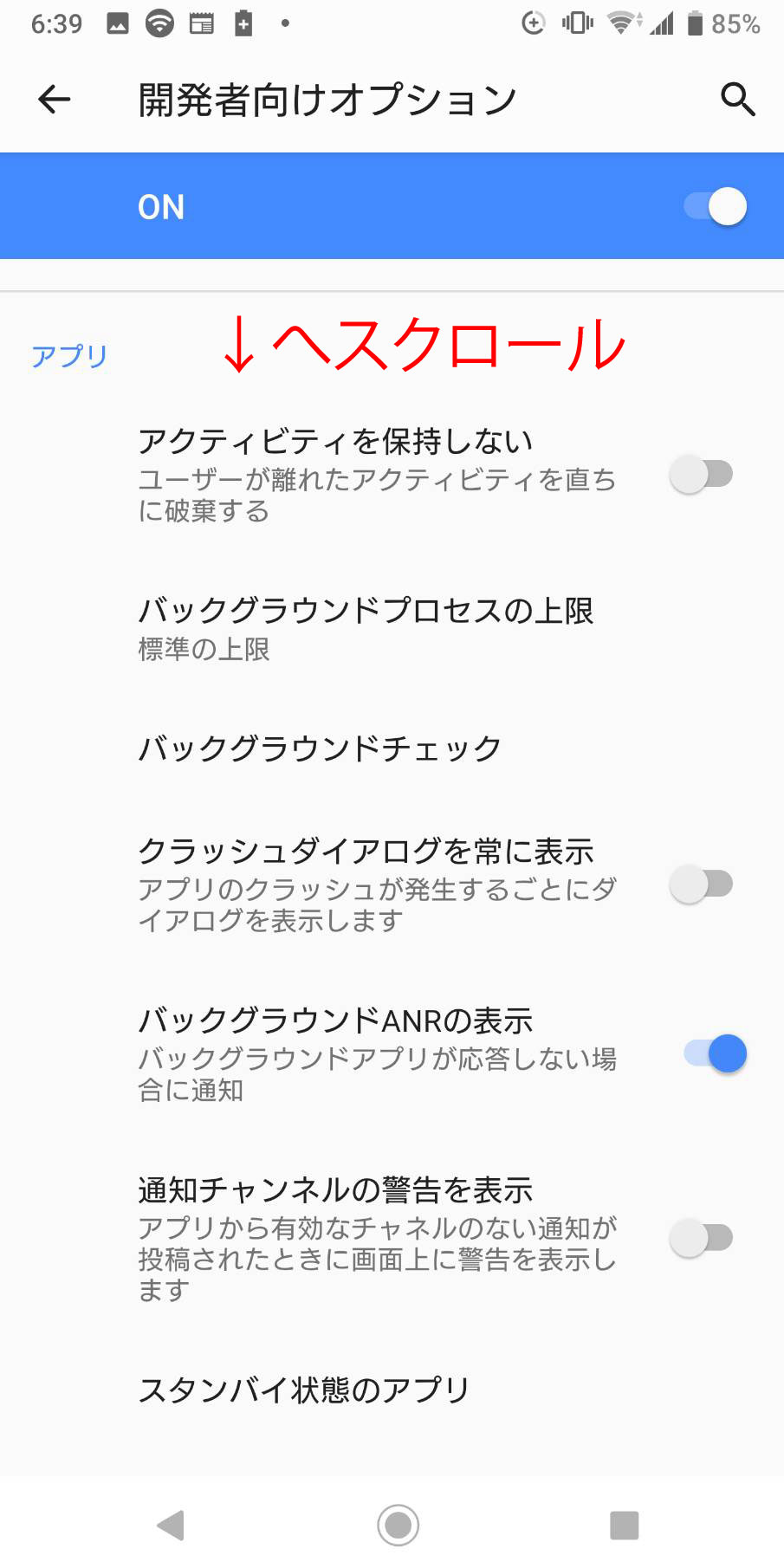 1-2.スクロールしていき、「アプリ」の欄まで行きます。